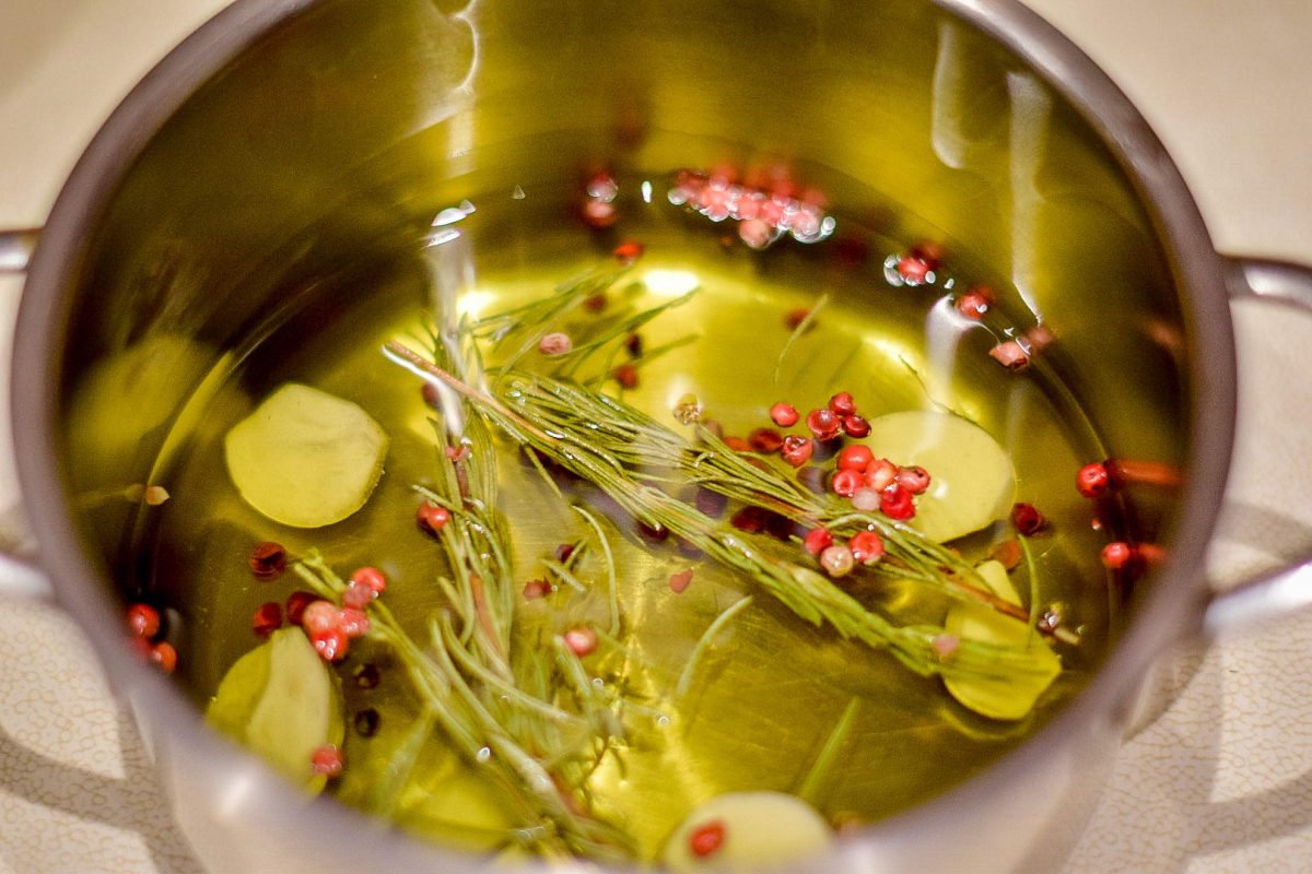 Aromatyzowanie oliwy z oliwek czosnkiem, papryczką chili lub cytryną jest łatwiejsze niż się wydaje. Sekret polega na podgrzaniu składników, a następnie ich odcedzeniu, co pozwala uniknąć ryzyka i przedłużyć smak.