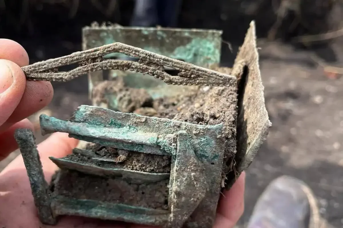 Oprócz delikatnego pudełka archeolodzy odnaleźli również różne przedmioty osobistego użytku, takie jak bransoletka, szklane koraliki, które prawdopodobnie stanowiły część naszyjnika, brązowy pierścień, kołki z kości do upinania włosów, brązowe ozdoby do pasków oraz niektóre elementy wyposażenia, takie jak nóżka trójnoga z zoomorficznymi zdobieniami, będąca eleganckim przykładem wyrafinowanych dzieł sztuki, które gromadził właściciel tego domu.