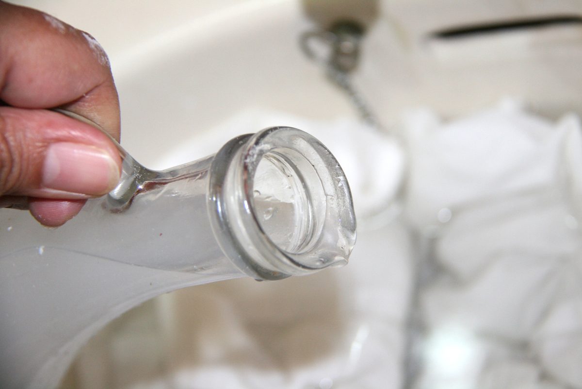 Dodanie pół szklanki octu do prania i odrobiny nadtlenku wodoru do ostatniego płukania przywraca biel ubrań i eliminuje nieprzyjemne zapachy bez uszkadzania włókien.