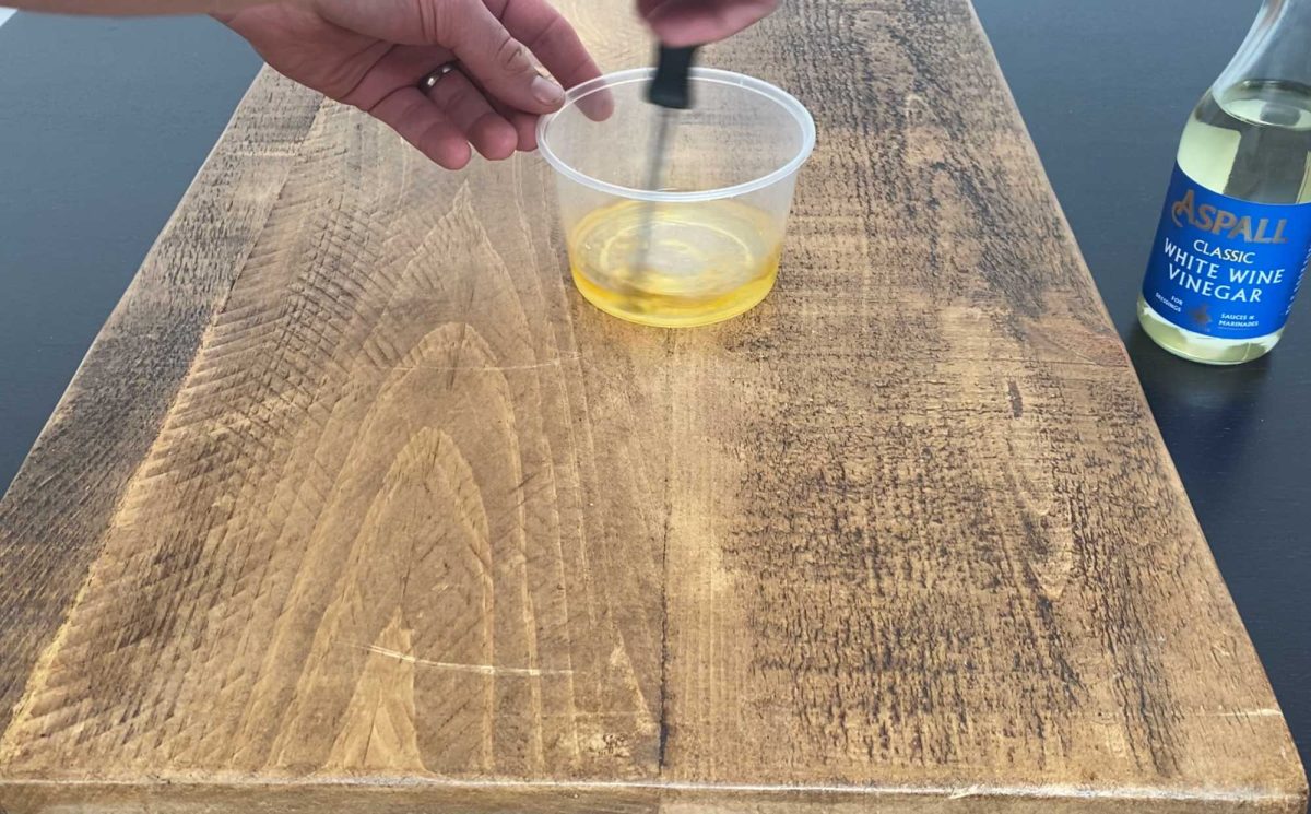 2. Formuła 3:1: Wymieszać trzy części oleju z jedną częścią octu. Pomaga to odżywić drewno, ale konieczne jest końcowe polerowanie w celu usunięcia nadmiaru. Jest idealny do mebli ogrodowych, które są wysuszone przez ekspozycję na słońce.